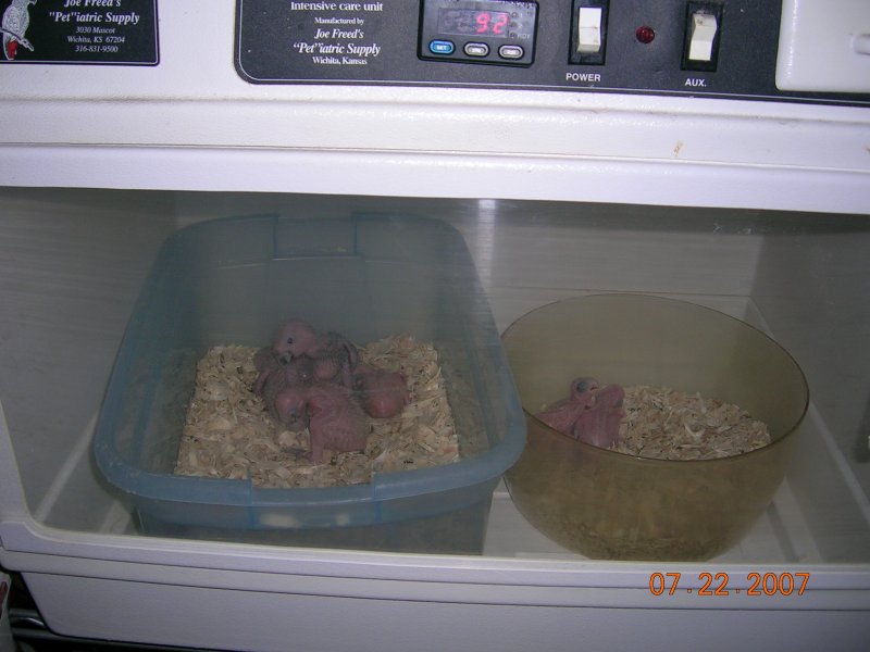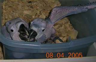 Two Yellow Nape Amazon babies hatch 8/15/07, 8/17 Great Talkers and love to show off.