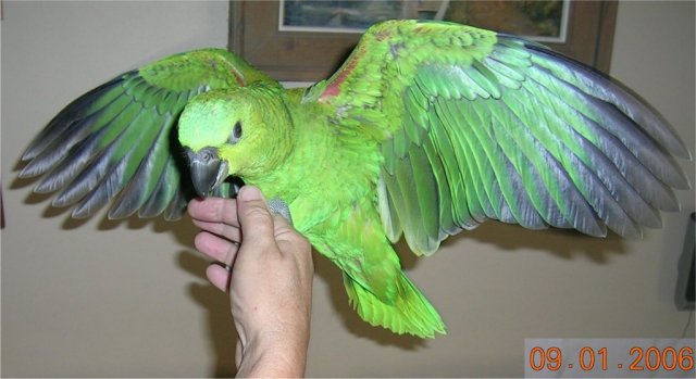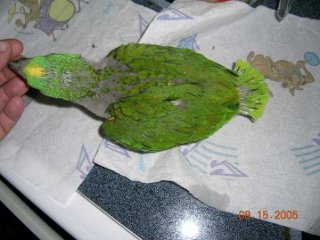 YELLOW NAPE AMAZON Baby Hatched 7/3/05 Don't miss out on owning one of the Best Amazons they are great talkers and they love to show off. 8 weeks old Now (will sex with Avian Bio-Tech for the buyer). He will wean fast just beginning to eat on his own, warm soaked Monkey Biscuits. He is a sweet baby.